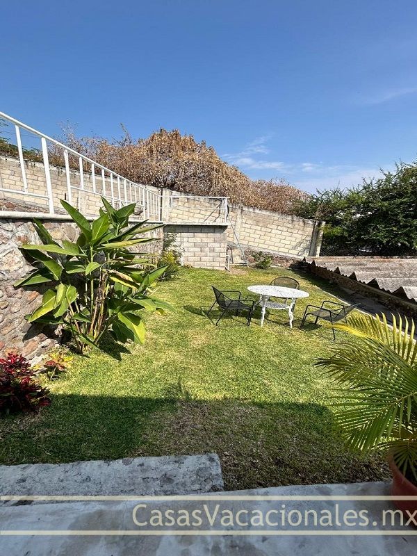 Jardín con asoleadero y asador.