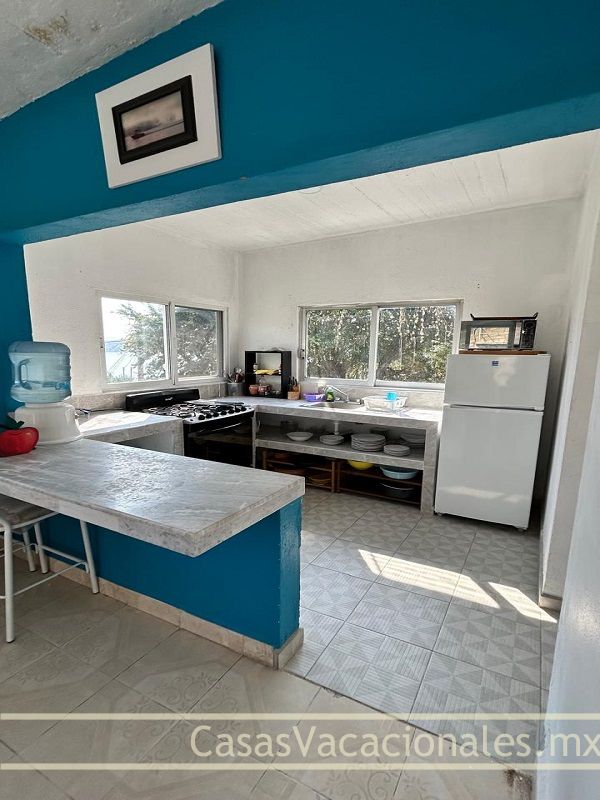 Cocina equipada: Refrigerador, horno de microondas, estufa, suficientes trastes y cubiertos.